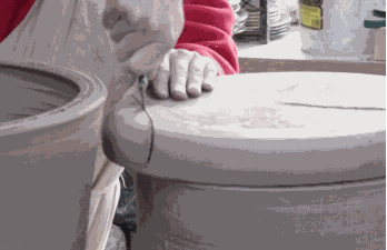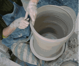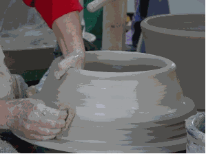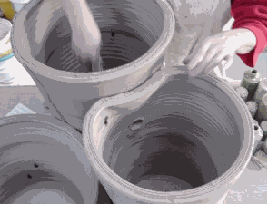 De krukken worden zo vervormd dat zij aan elkaar passen. |