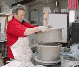 Een tweede hoeveelheid klei wordt aangebracht om hoger te kunnen komen. |