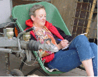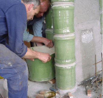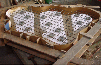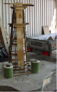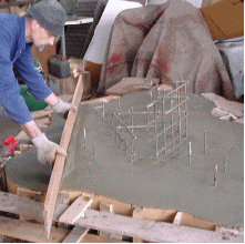 Op een stelconplaat (beton 2x2m) wordt door Wim de bekisting voor de fundering gemaaakt. |