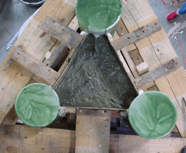 Het betonstorten is in volle gang. |