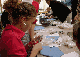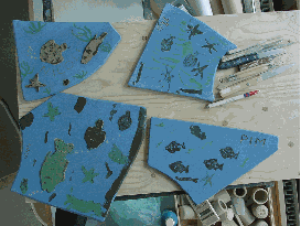 Chantal knipt eerst een sjabloon van haar vis. |