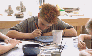 Maikel maakt een originele schildering. |